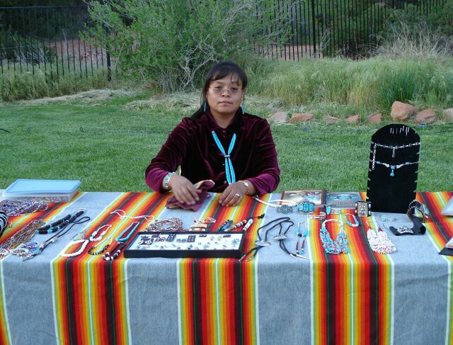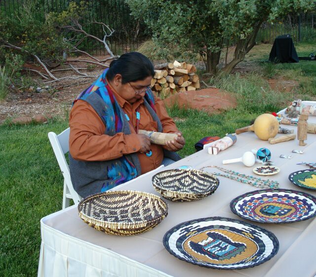 Sandpainting is an ancient Navajo healing art. Our authentic Sandpainter displays amazing artistry and dexterity while creating “paintings” that portray deities and symbols that are sacred to the Navajo people.